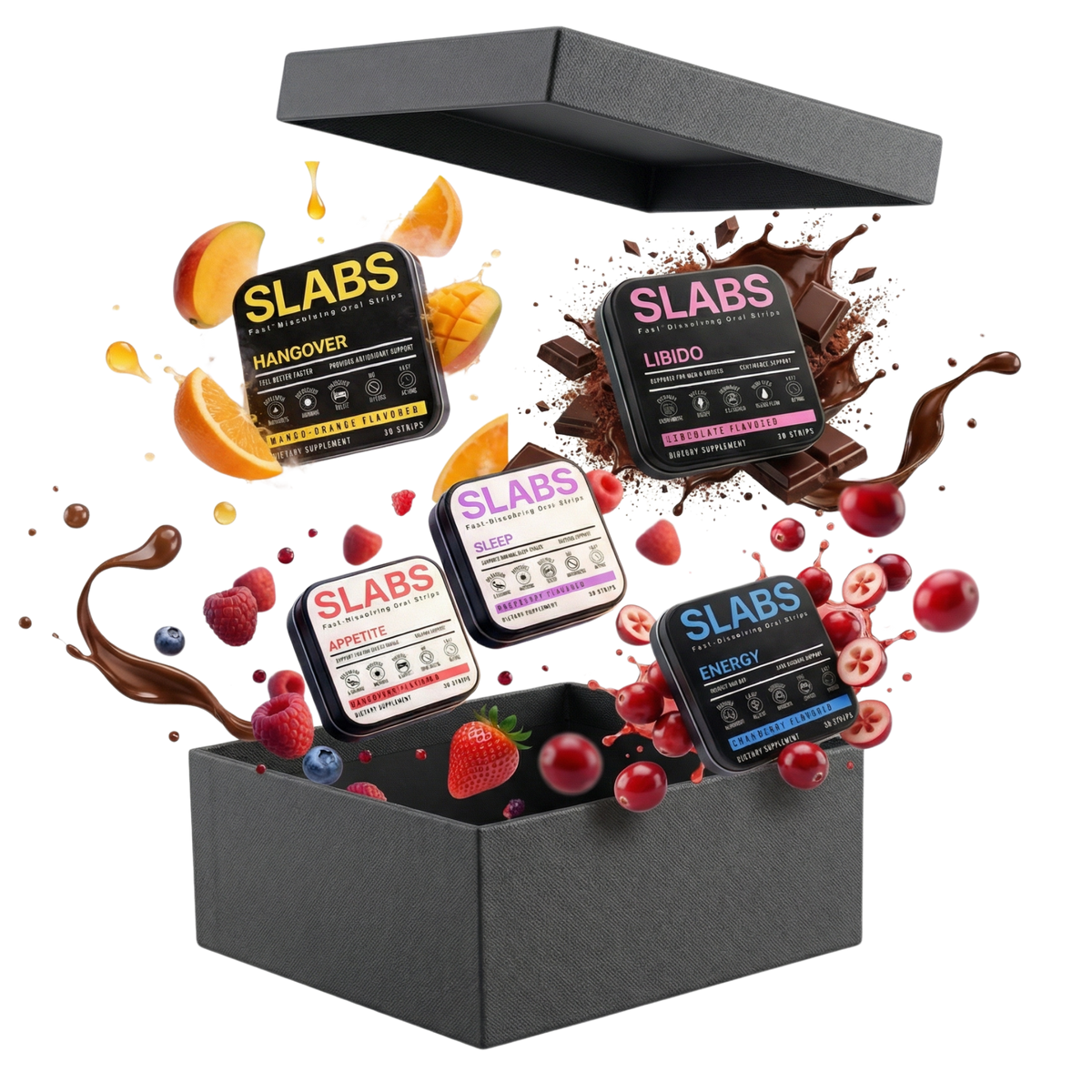 SLABS are fast-dissolving oral supplement strips designed for simple, on-the-go support.