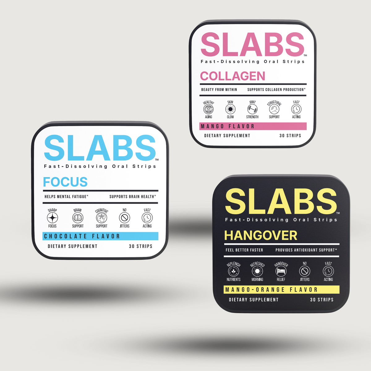 SLABS dissolve directly on the tongue, allowing ingredients to begin absorbing through the oral mucosa instead of waiting to fully break down like traditional pills, capsules, or powders. The result is a more convenient, more portable, and more modern wellness format.
